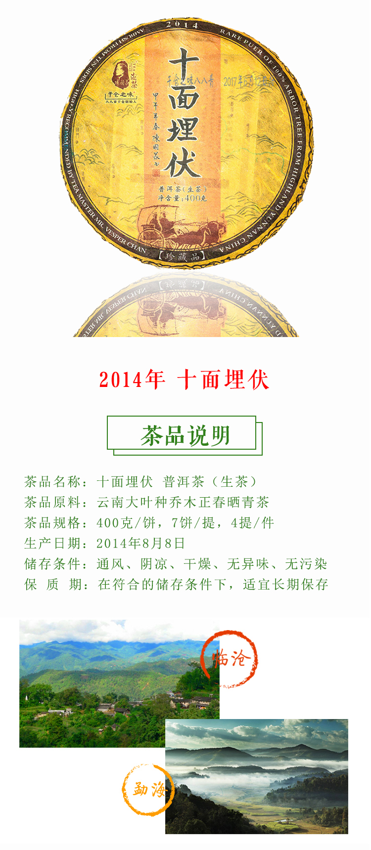 普洱生茶 | 2014年十面埋伏 干仓之味 陈国义选茶 400克/饼